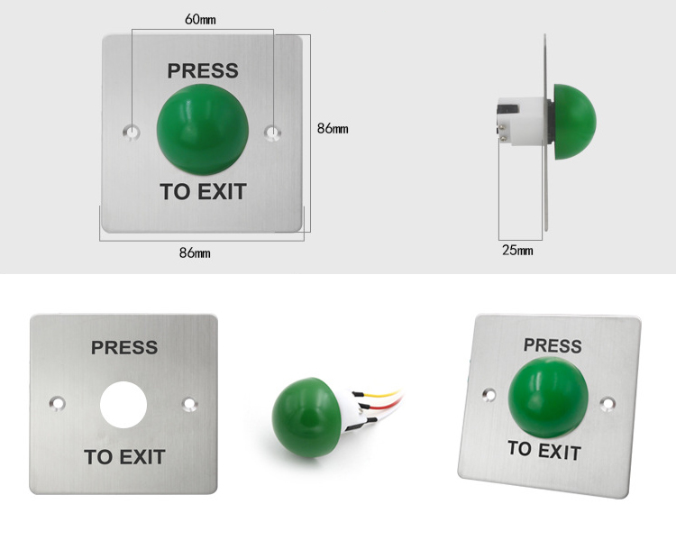 SS86MG 绿色蘑菇头门禁开关1.7mm不锈钢面板