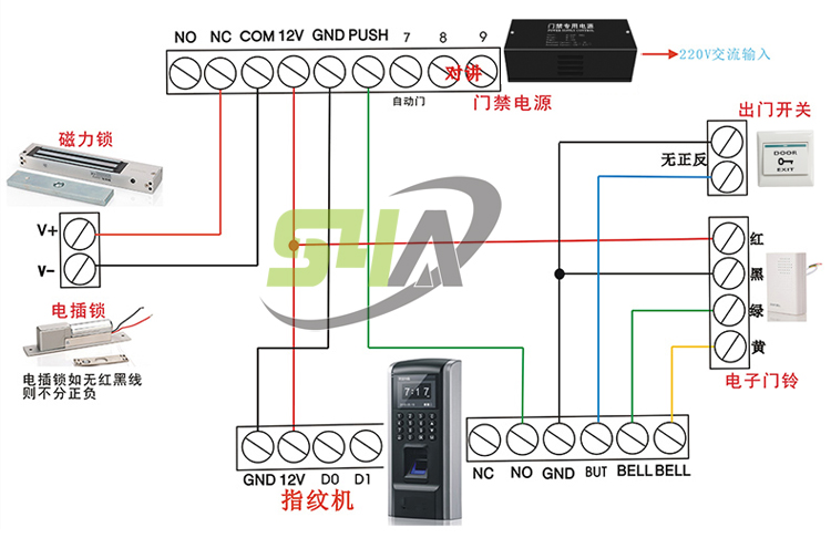 | 连接端口 | MOS输出,开门按钮,DOTL,报警器,韦根输出,韦根输入,门铃 |