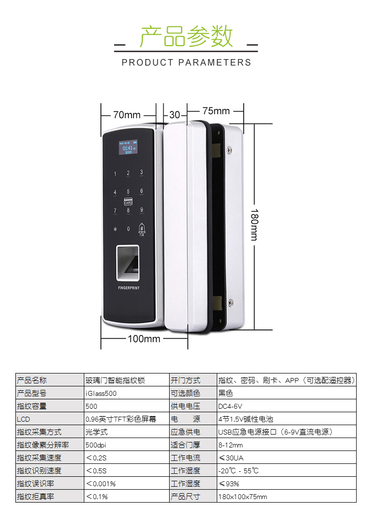 iGlass500 玻璃门指纹锁